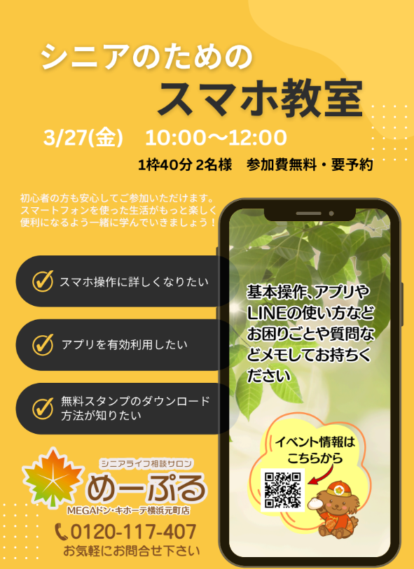 ☆3/27(金)横浜元町店「シニアのためのスマホ教室」開催!